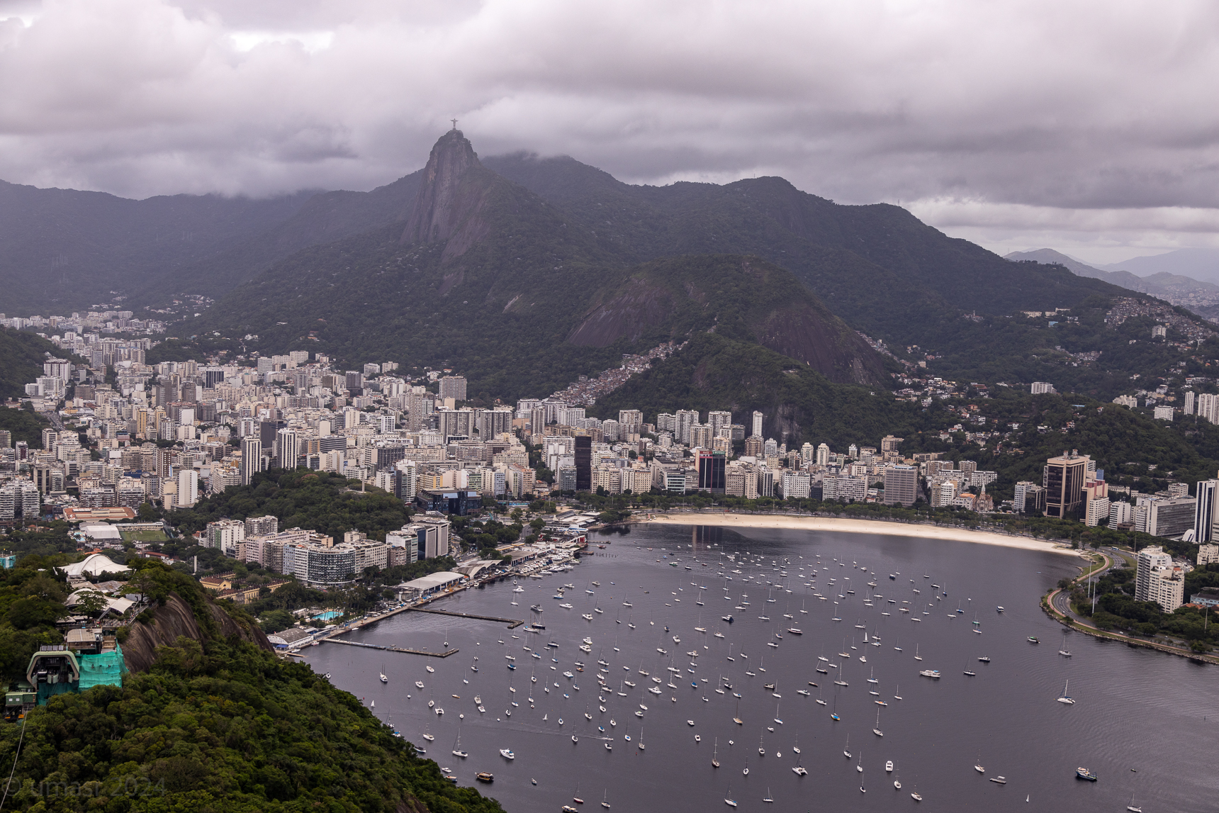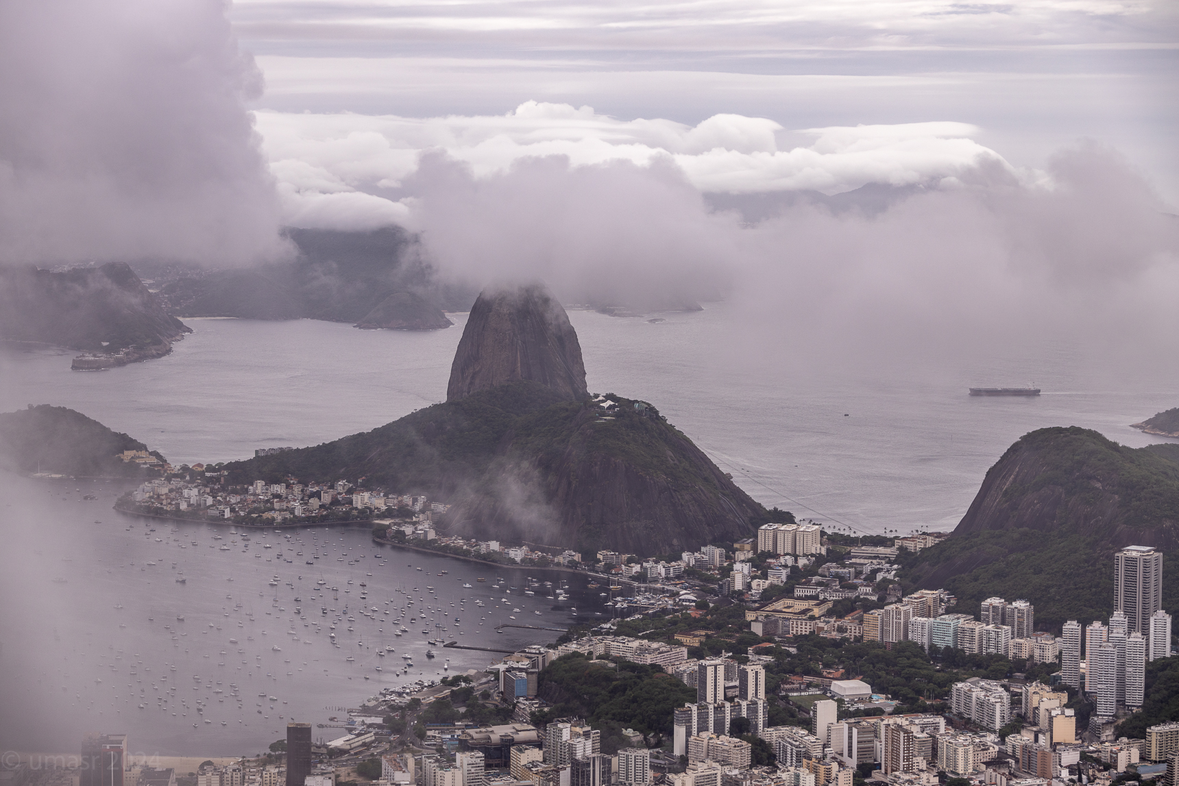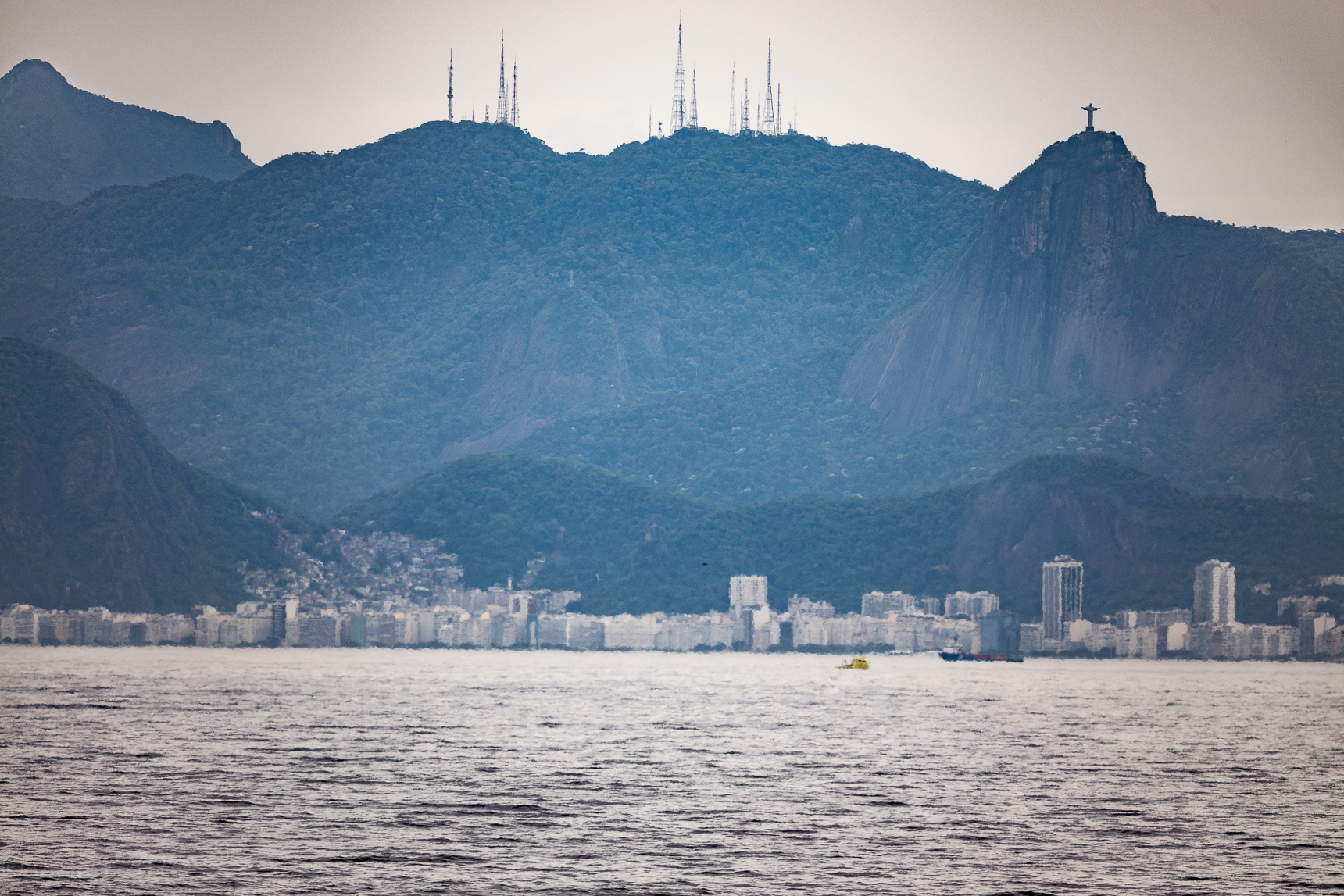 Das Wetter spielt nicht ganz mit. Am frühen Morgen liegt Regen über der Stadt, und die Wahrzeichen Christusstatue auf dem Corcovado (710 Meter hoch) sowie der Zuckerhut (Pão de Açúcar) sind zunächst von dichten Wolken verdeckt.