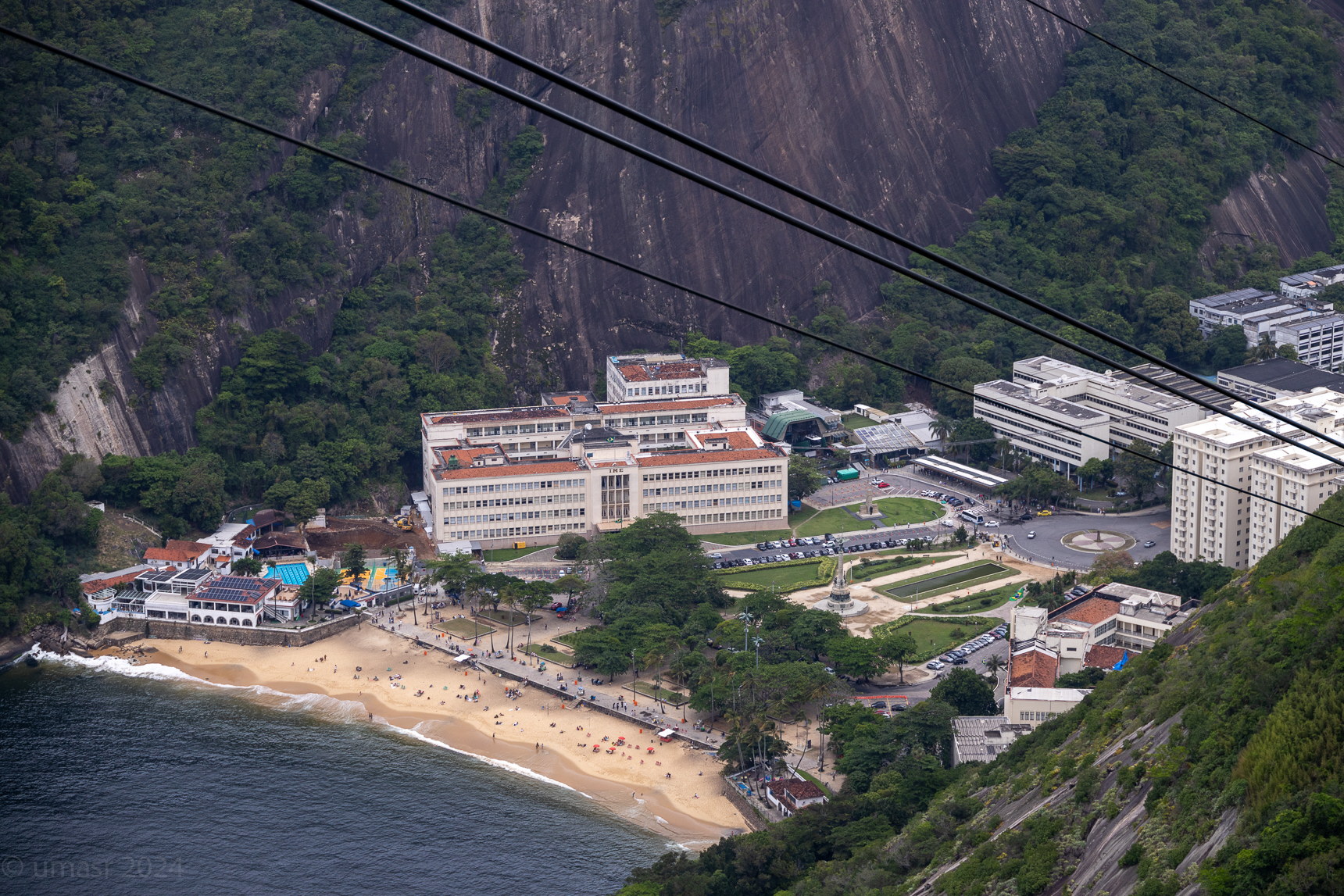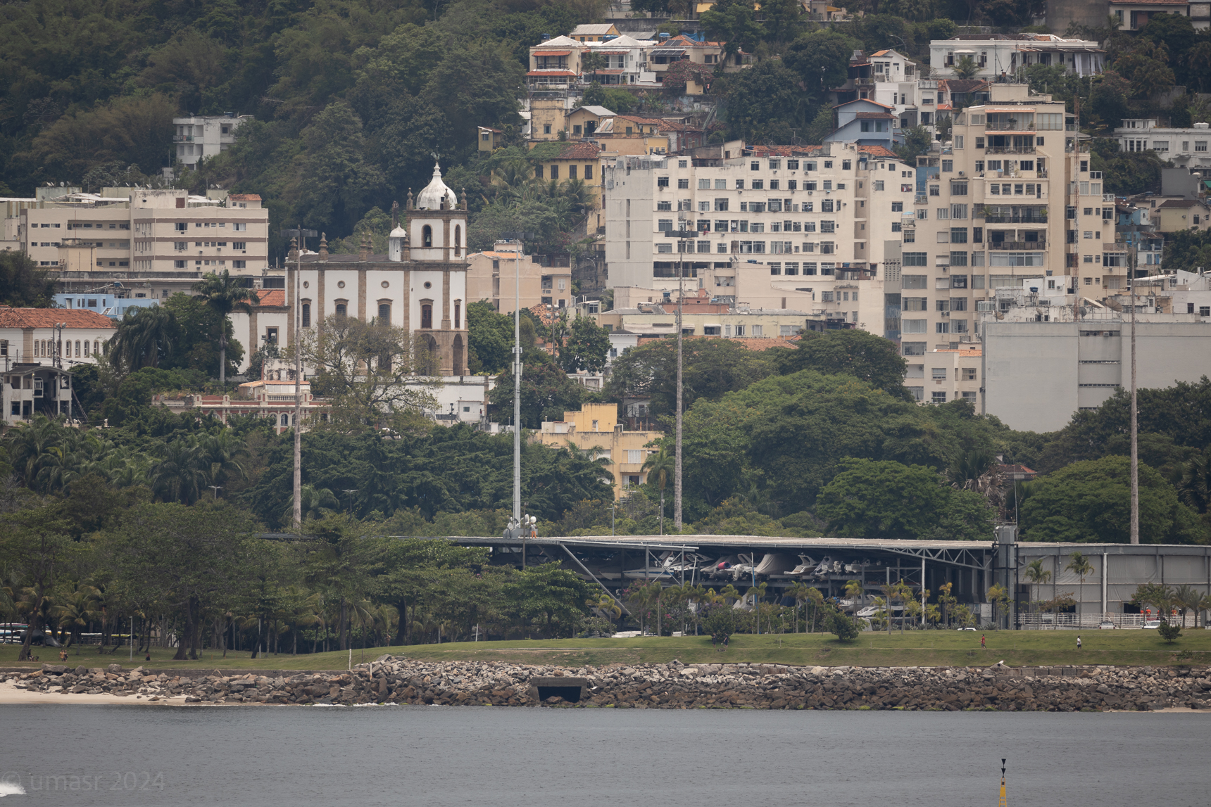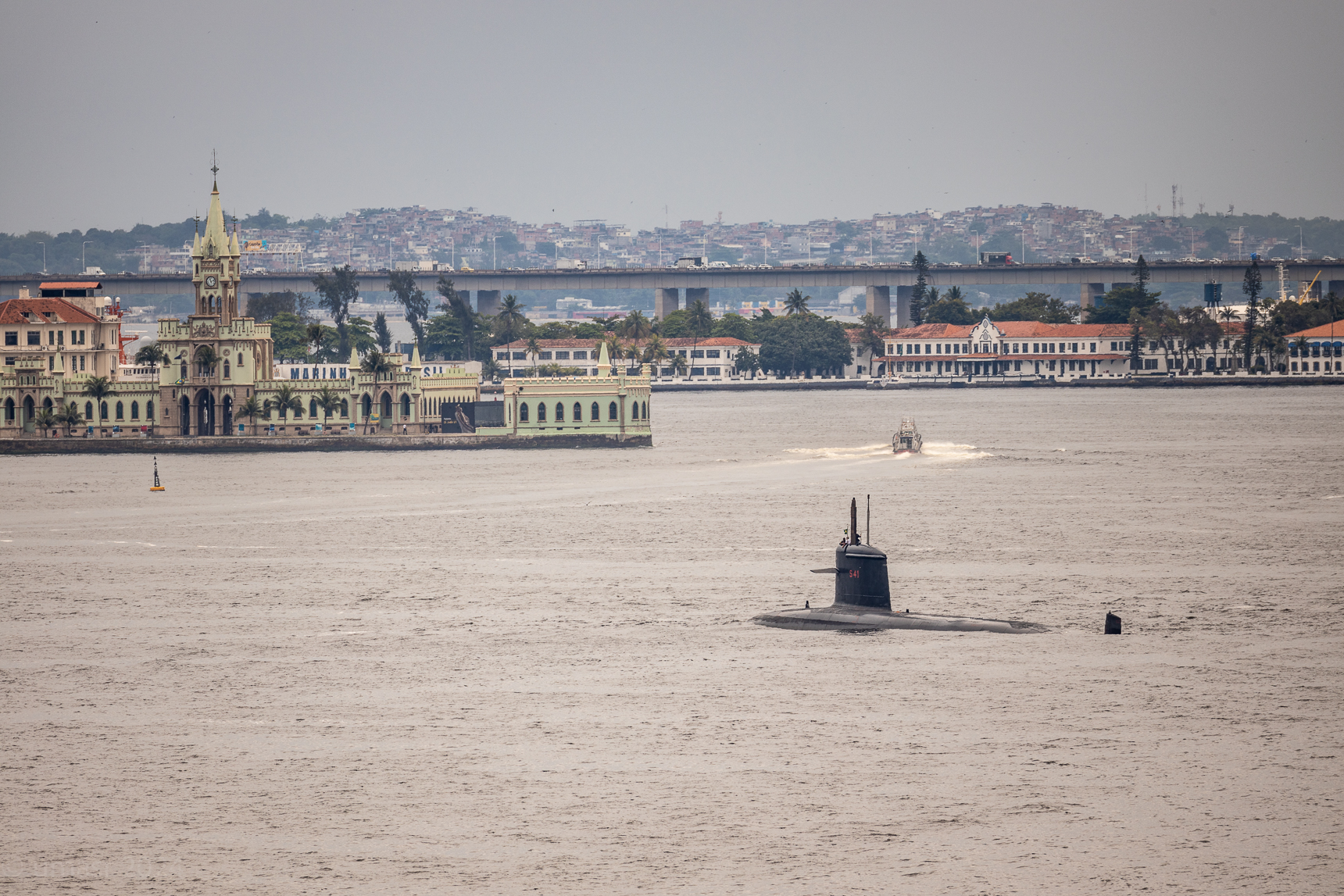 Auf dem Weg durch die Bucht sehen wir eine Szene, die man hier nicht unbedingt erwarten würde: Ein U-Boot kreuzt unseren Kurs. Später erfahren wir, dass der Sicherheitsaufwand gerade besonders hoch ist, der G20-Gipfel wird am 18./19. November 2024 hier in Rio de Janeiro stattfinden. Für uns Kreuzfahrttouristen bedeutet das, viele Sicherheitskräfte, aber auch ein Gefühl von Schutz und Ordnung.