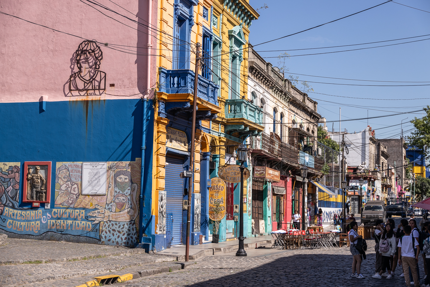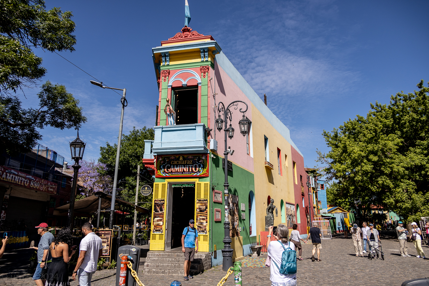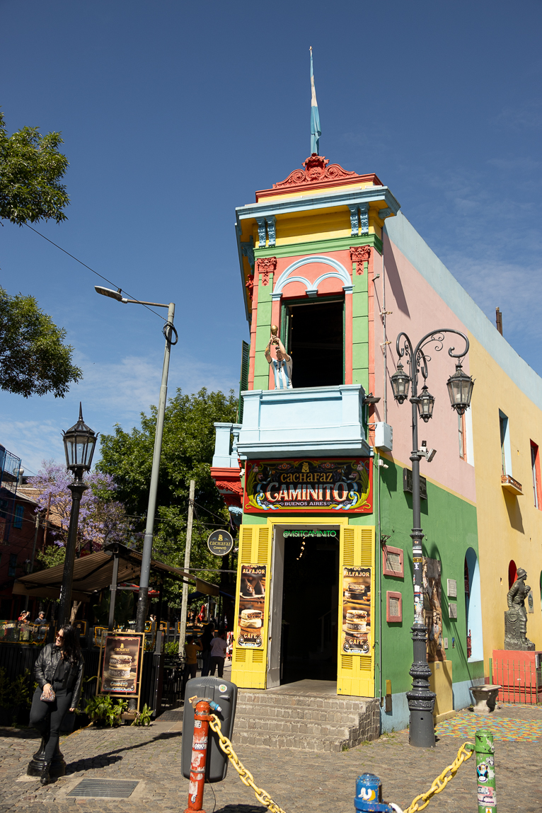 Weiter geht’s nach La Boca und plötzlich fühlt es sich an, als wären wir in eine andere Welt eingetaucht. Die bunten Häuser, die Tangomusik, die Straßenkünstler, alles wirkt wie eine lebendig gewordene Postkarte. Ein kurzer Stopp, ein tiefes Durchatmen. Hier, wo der Tango geboren wurde, pulsiert das echte Buenos Aires...