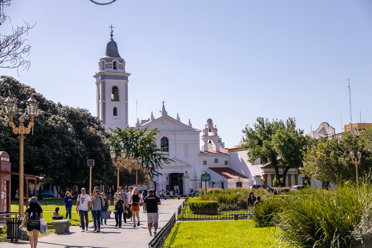 Wir überqueren die Brücke zur Facultad de Derecho UBA, der juristischen Fakultät, und tauchen ein in das kulturelle Herz von Buenos Aires. Weiter zur Feria Artesanal Plaza Francia, eine kurze Besichtigung der Basilica Nuestra und einem lebhaften Kunsthandwerksmarkt, perfekt für ein kleines Andenken an diesen Tag.