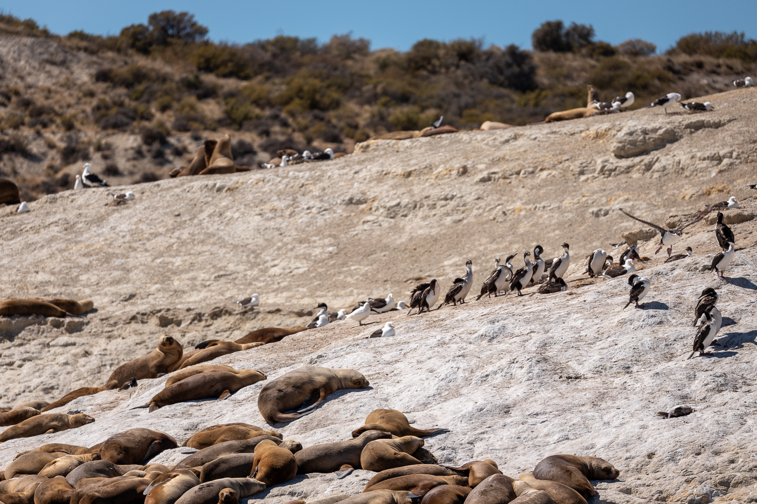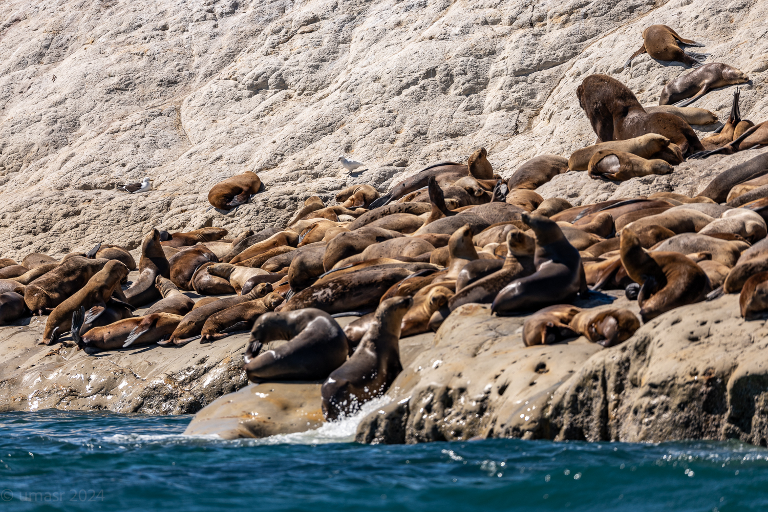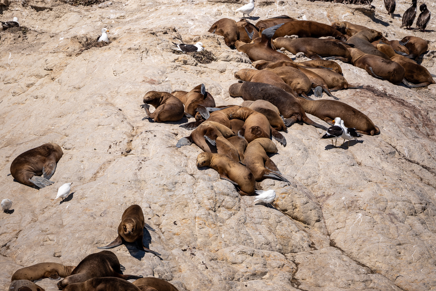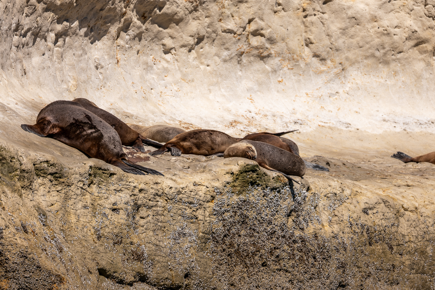 Ein paar Taucher die wir später auf dem Rückweg trafen, wollten ihr Glück versuchen. In Neoprenanzügen, Brille, Schnorchel und Flossen glitten sie ins Wasser, bereit für ein einzigartiges Erlebnis. Doch die Seelöwen blieben unbeeindruckt. Keine neugierigen Annäherungen, kein verspieltes Kreisen. Heute hatten sie einfach keine Lust auf Gesellschaft. Wer kann es ihnen verübeln? Manchmal ist eben auch für Seelöwen ein Tag zum Entspannen.
