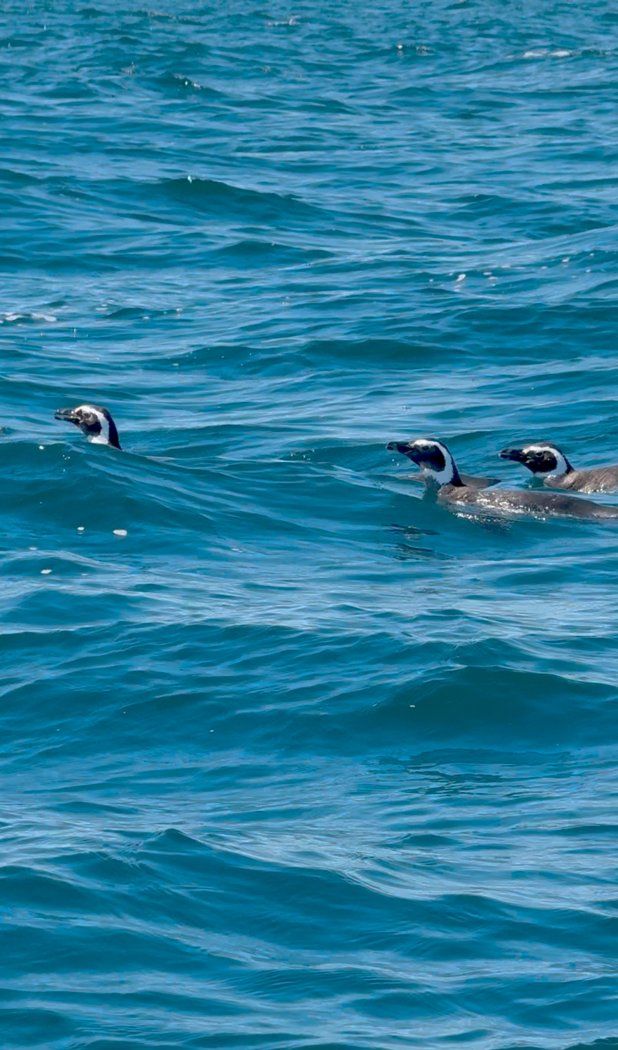 Ganz anders als unsere letzte Begegnung an diesem Tag. Eine Gruppe Pinguine tauchte neben unserem Boot auf, flink, elegant und überraschend interessiert an uns. Statt sich weiter auf ihre Fischjagd zu konzentrieren, drehten sie ein paar Extra-Runden, als wollten sie sehen, was für seltsame Wesen da über ihrem Revier hinwegfuhren. Ein Tausch der Perspektiven, heute waren wir die Attraktion, nicht sie.