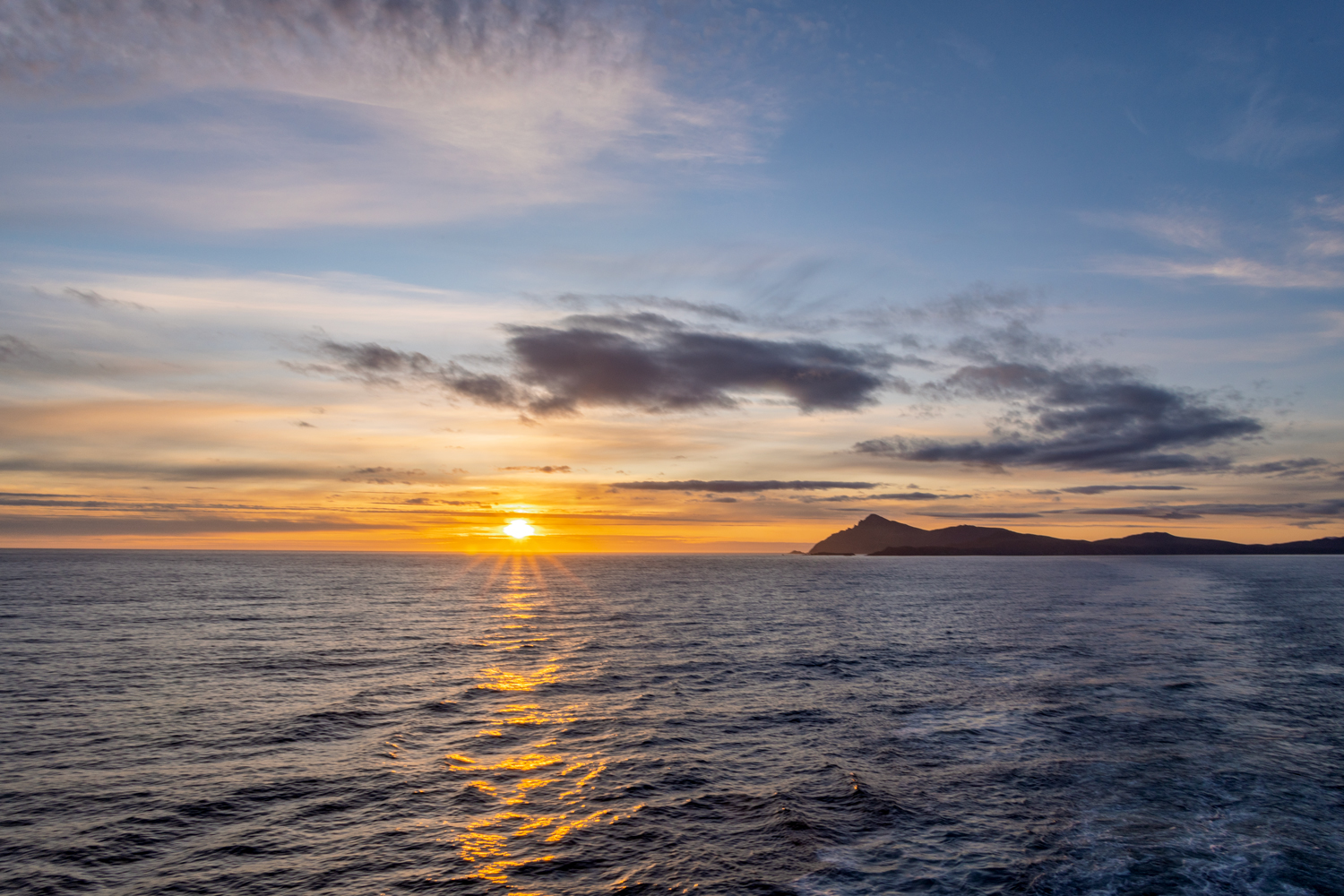 Die See ist heute ruhig, fast zu ruhig für diesen geschichtsträchtigen Ort. Vor zwei Tagen tobte hier noch ein Orkan mit Windgeschwindigkeiten von 120 km/h, doch nun gleiten wir sanft über das Wasser. Für einen Moment verstummen die Maschinen der AIDAsol, und eine beinahe ehrfürchtige Stille legt sich über das Schiff. Nur das leise Rauschen der Wellen begleitet uns, als wir das Kap passieren, den südlichsten Punkt auf unserer Weltreise. Ein Sonnenuntergang taucht den Horizont in flammendes Orange und tiefes Violett, als wollten die Elemente uns für den friedlichen Moment entschädigen. Gänsehaut.