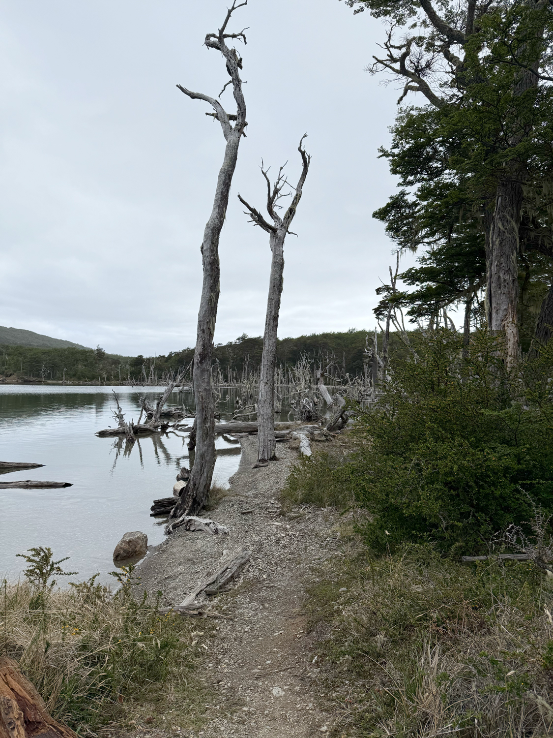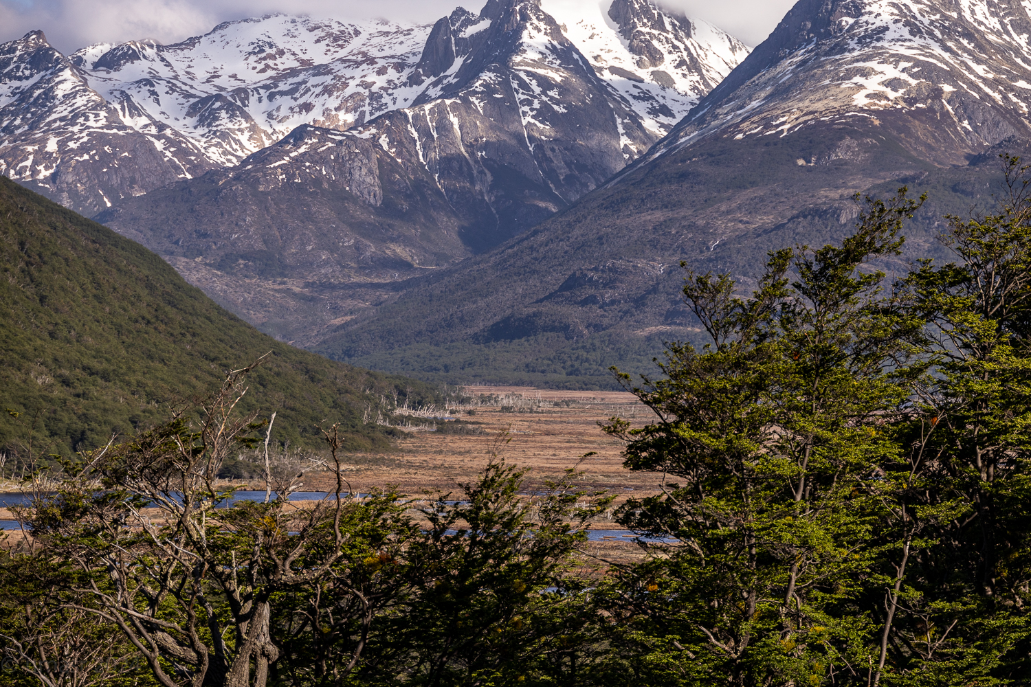 Zunächst führt uns die Route durch Ushuaia. Die Stadt ist rau, geprägt vom Meer und den Bergen, gleichzeitig voller Leben. Doch kaum haben wir die letzten Häuser hinter uns gelassen, öffnet sich eine andere Welt, endlose Weiten, schneebedeckte Gipfel und tiefblaue Seen. Die Ruta Nacional 3 führt uns vorbei an spektakulären Panoramen, die mit jedem Kilometer wilder werden.