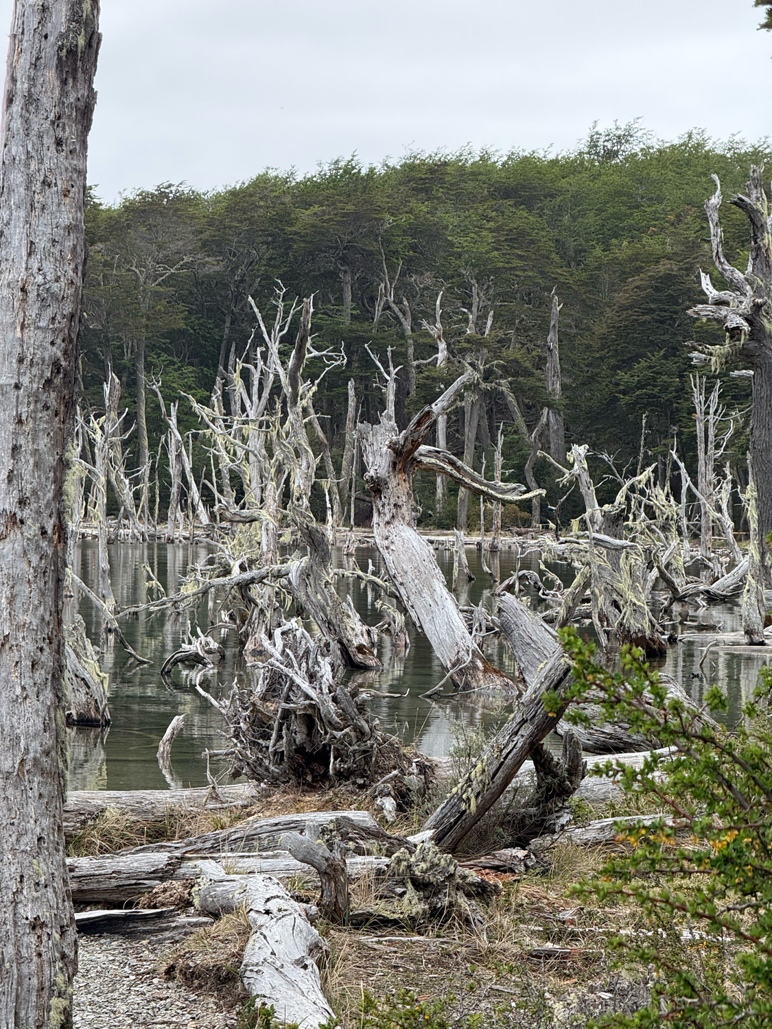 Am Lago Escondido tauschen wir den festen Boden gegen das Schlauchboot. Der Wind zerrt an den Wellen, und jede Bewegung auf dem Wasser fühlt sich an wie ein Tanz mit den Elementen. Adrenalin mischt sich mit Staunen, ein Moment purer Intensität. Weiter geht es durch dichte Wälder und über holprige Wege zum Lago Fagnano, wo ein rustikales Mittagessen in der Wildnis auf uns wartet. Feuerholz knistert, der Duft gegrillten Fleisches liegt in der Luft, und für einen Augenblick scheint die Zeit stillzustehen.