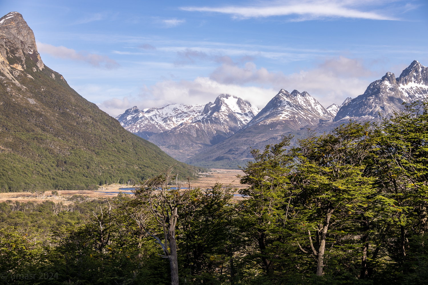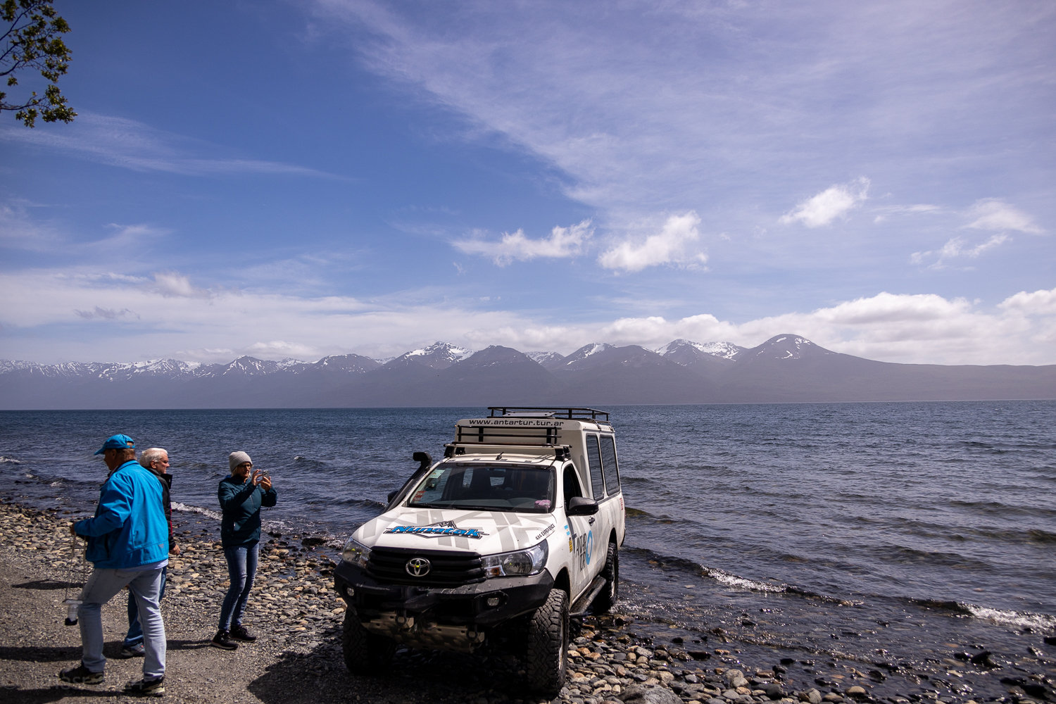 Zunächst führt uns die Route durch Ushuaia. Die Stadt ist rau, geprägt vom Meer und den Bergen, gleichzeitig voller Leben. Doch kaum haben wir die letzten Häuser hinter uns gelassen, öffnet sich eine andere Welt: endlose Weiten, schneebedeckte Gipfel und tiefblaue Seen. Die Ruta Nacional 3 führt uns vorbei an spektakulären Panoramen, die mit jedem Kilometer wilder werden.