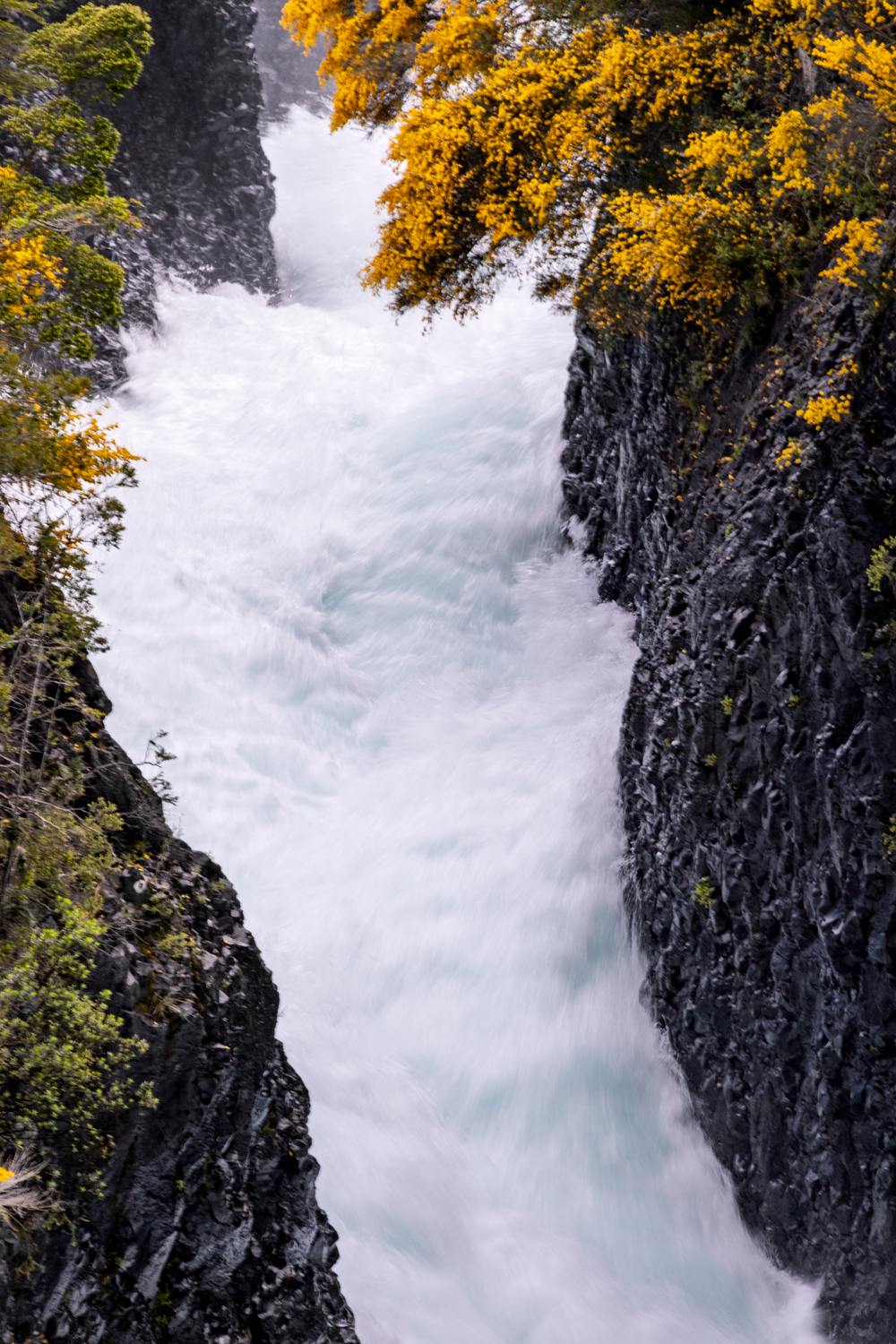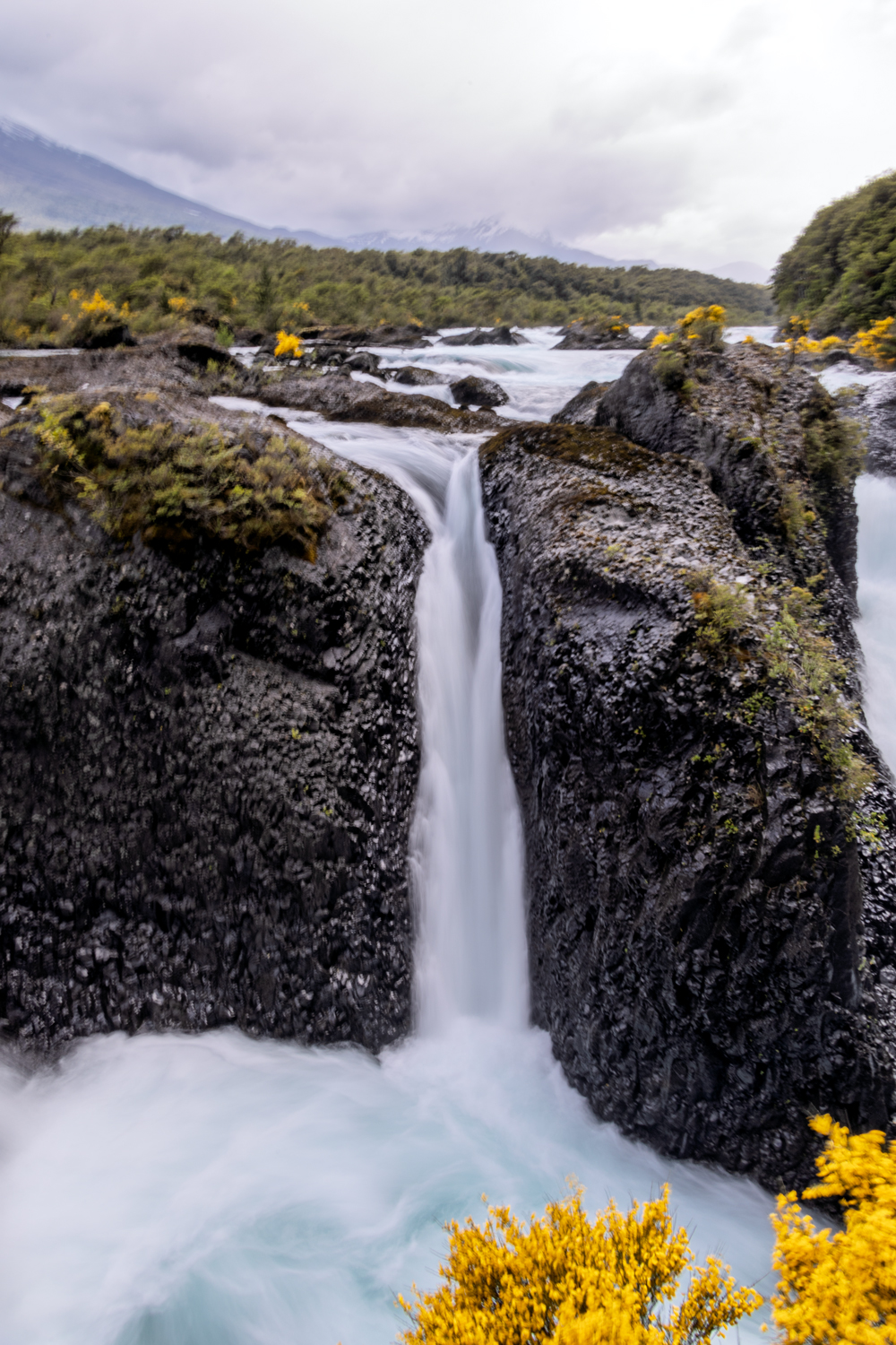 Genau durch diese Landschaft führt uns heute mein Ausflug, Ziel ist der eisbedeckte Vulkan Osorno mit einer Höhe von 2.635 Meter. Zuvor fahren wir die Petrohué Wasserfälle an. Wie gut das ich meine ND-Filter eingepackt habe. Mit offener Blende und einem N64 Graufilter werden die Fotos besonders. Anschließend gibt es ein deftiges Mittagsbuffet im Restaurante Fogón Pucará am Lago Lianquihue. Etwas Zeit bleibt uns nach dem Essen um am Seeufer von der imposanten Umgebung einige Fotos zu machen. Am Ufer des Lago Lianquihue kreisten Truthangeier, eine Geierart die man von Kanada bis zur Südspitze Südamerikas beobachten kann. Seine breiten Flügel hält er in einer seichten V-Form und nutzt so perfekt die Thermik für seine Gleitflug aus. Seinen deutschen Namen bekam er aufgrund der Ähnlichkeit seines kahlen, roten Kopfes mit dem eines männlichen Truthahns.