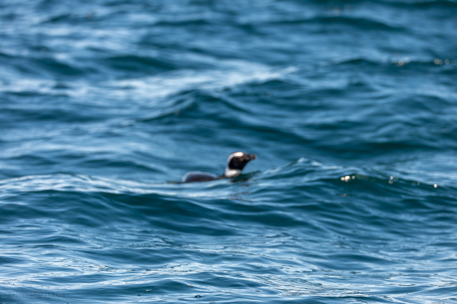 Ganz anders als unsere letzte Begegnung an diesem Tag: Eine Gruppe Pinguine tauchte neben unserem Boot auf – flink, elegant und überraschend interessiert an uns. Statt sich weiter auf ihre Fischjagd zu konzentrieren, drehten sie ein paar Extra-Runden, als wollten sie sehen, was für seltsame Wesen da über ihrem Revier hinwegfuhren. Ein Tausch der Perspektiven – heute waren wir die Attraktion, nicht sie.