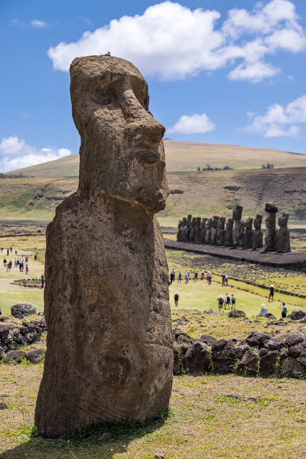 Dann kam der Moment, auf den ich mich am meisten gefreut hatte: Ahu Tongariki. 15 majestätische Moai blicken in die Ferne, aufgereiht wie stumme Wächter einer verlorenen Welt. Ich stand vor diesen steinernen Giganten, spürte den Wind in meinem Gesicht und dachte: Wie viele Geheimnisse bewahren diese Statuen wohl noch?