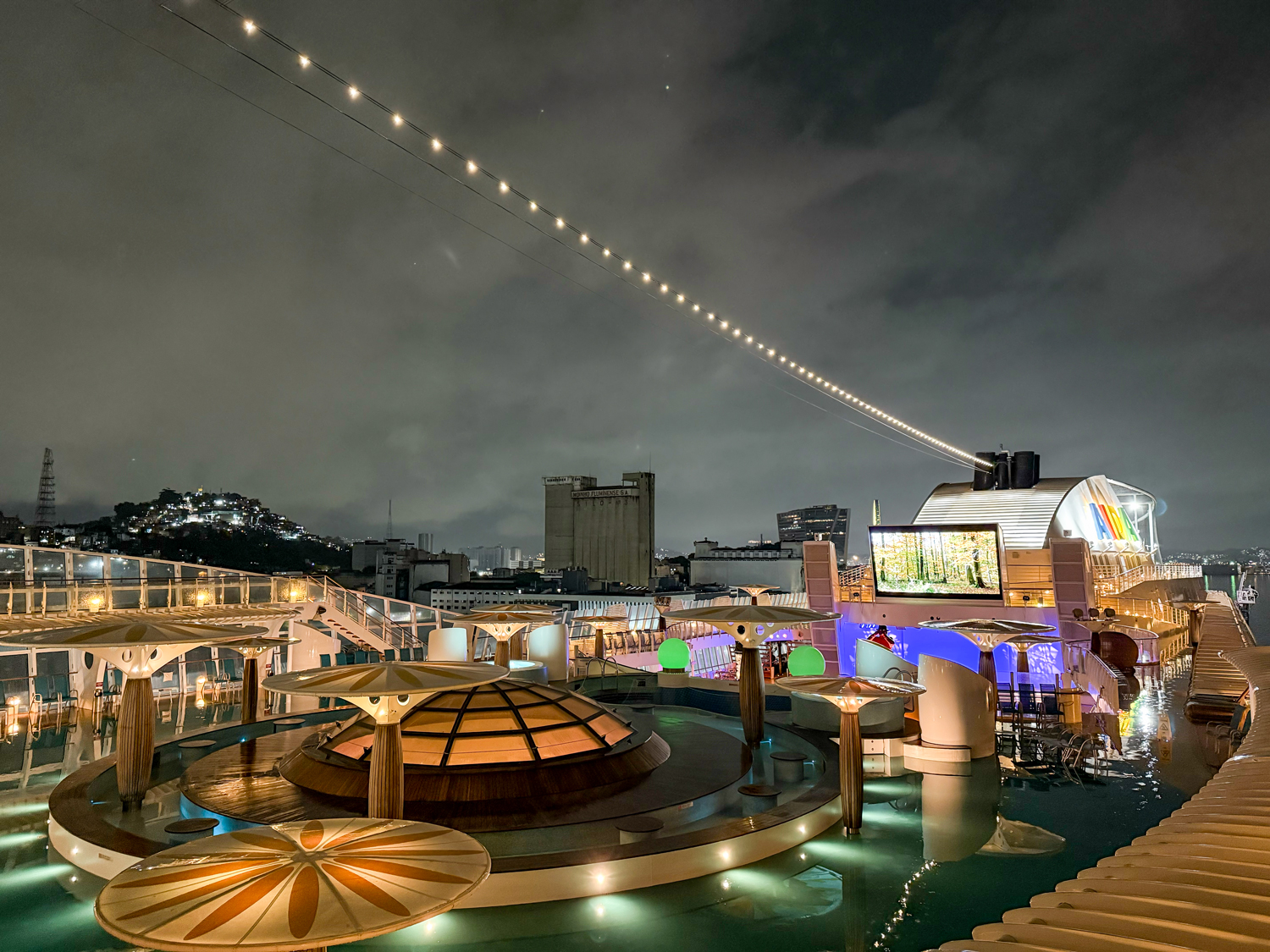 Für den Abend haben wir eine Rundfahrt „Rio bei Nacht“ gebucht, doch aus der geplanten Lichterfahrt wird eher eine Regenfahrt. Und nicht nur ein leichter Schauer, es schüttet wie aus Eimern. Trotzdem hat die Stadt auch im Regen ihren Charme. Die Neonlichter spiegeln sich in den nassen Straßen, und die berühmte Lapa-Bogenbrücke mit ihren historischen Straßenbahnen taucht aus dem Dunst auf. Am späten Abend kehren wir durchnässt, aber voller Eindrücke, zum Schiff zurück in der Hoffnung, dass der nächste Tag sonniger wird.