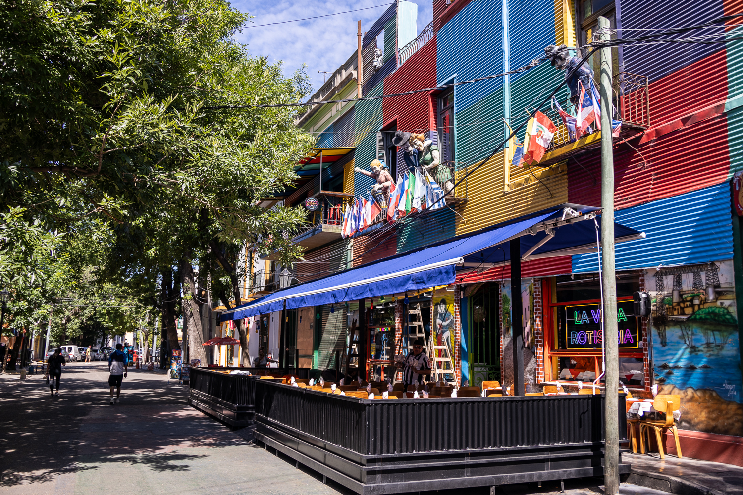 Weiter geht’s nach La Boca und plötzlich fühlt es sich an, als wären wir in eine andere Welt eingetaucht. Die bunten Häuser, die Tangomusik, die Straßenkünstler, alles wirkt wie eine lebendig gewordene Postkarte. Ein kurzer Stopp, ein tiefes Durchatmen. Hier, wo der Tango geboren wurde, pulsiert das echte Buenos Aires...