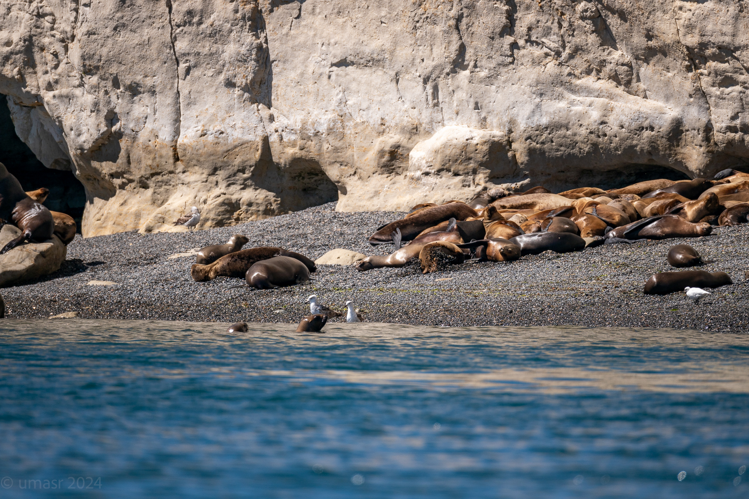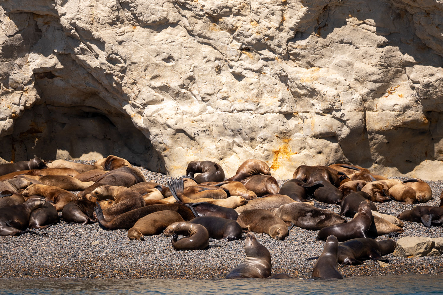 Und dann, mitten in dieser weiten, wilden Kulisse, waren sie plötzlich da, Seelöwen am Ufer in der Sonne. Manche dösten träge auf den Felsen, andere ließen sich von den Wellen treiben, als wäre das Meer ein Paradies. Normalerweise sind diese verspielten Gesellen neugierig, doch heute schienen sie sich nicht aus der Ruhe bringen zu lassen.