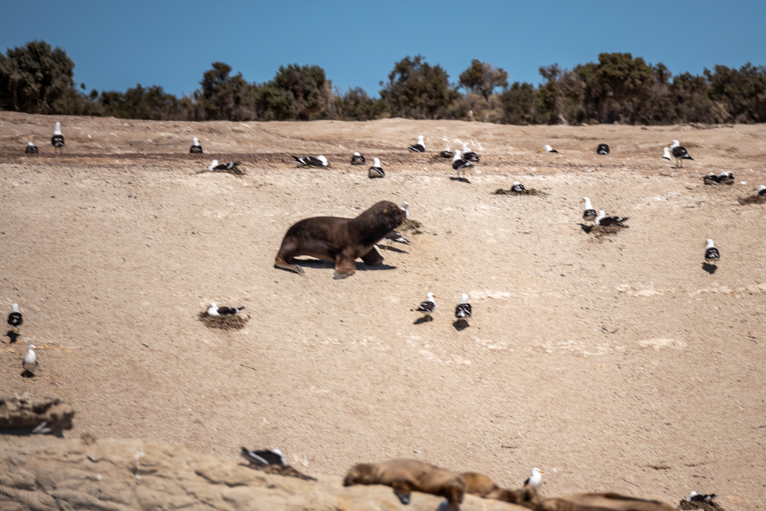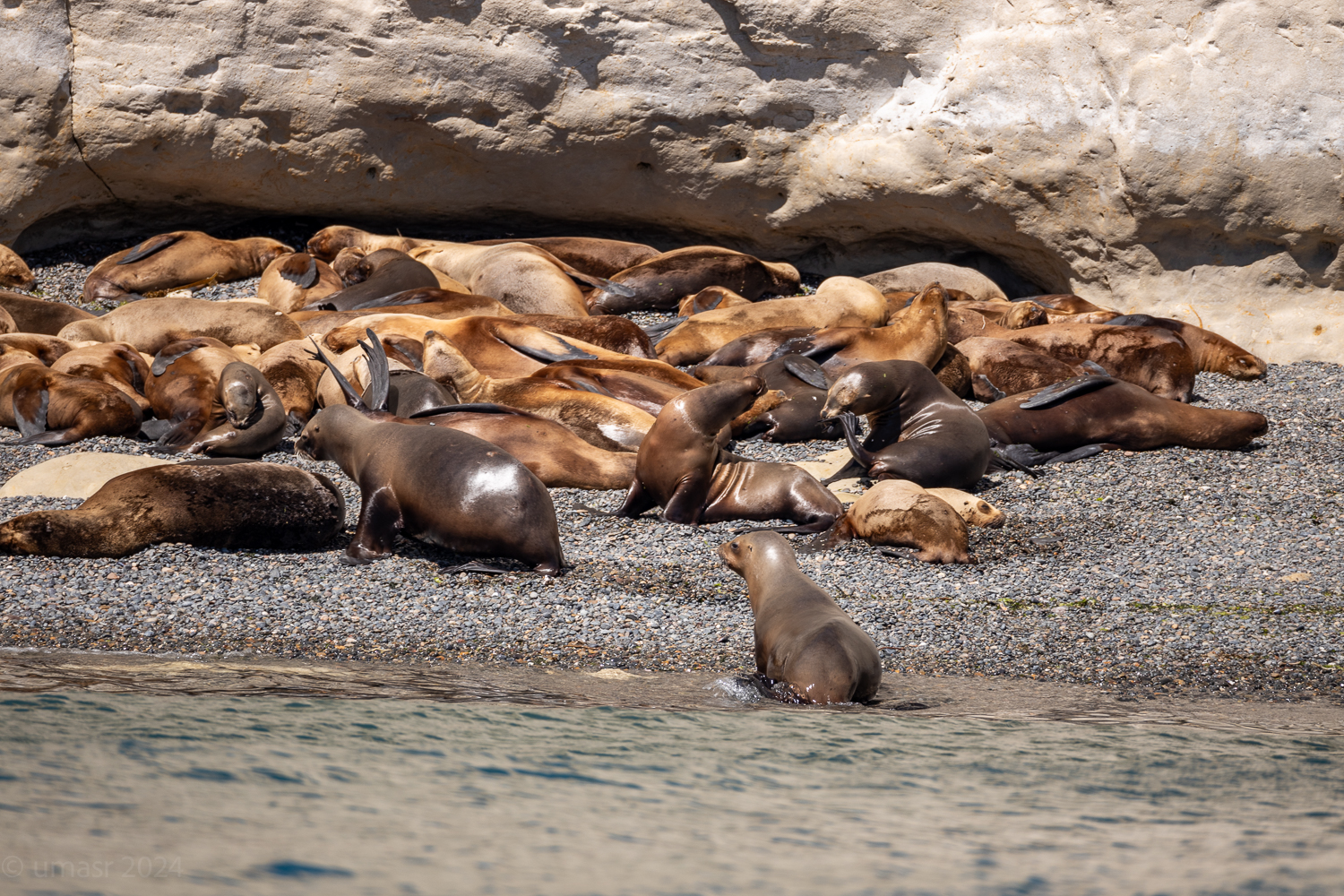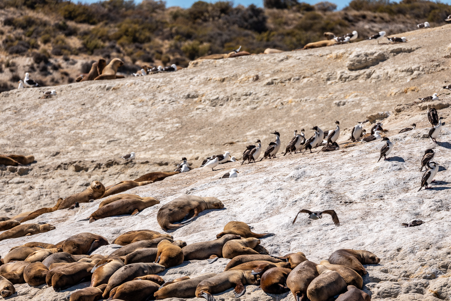 Ein paar Taucher die wir später auf dem Rückweg trafen, wollten ihr Glück versuchen. In Neoprenanzügen, Brille, Schnorchel und Flossen glitten sie ins Wasser, bereit für ein einzigartiges Erlebnis. Doch die Seelöwen blieben unbeeindruckt. Keine neugierigen Annäherungen, kein verspieltes Kreisen. Heute hatten sie einfach keine Lust auf Gesellschaft. Wer kann es ihnen verübeln? Manchmal ist eben auch für Seelöwen ein Tag zum Entspannen.