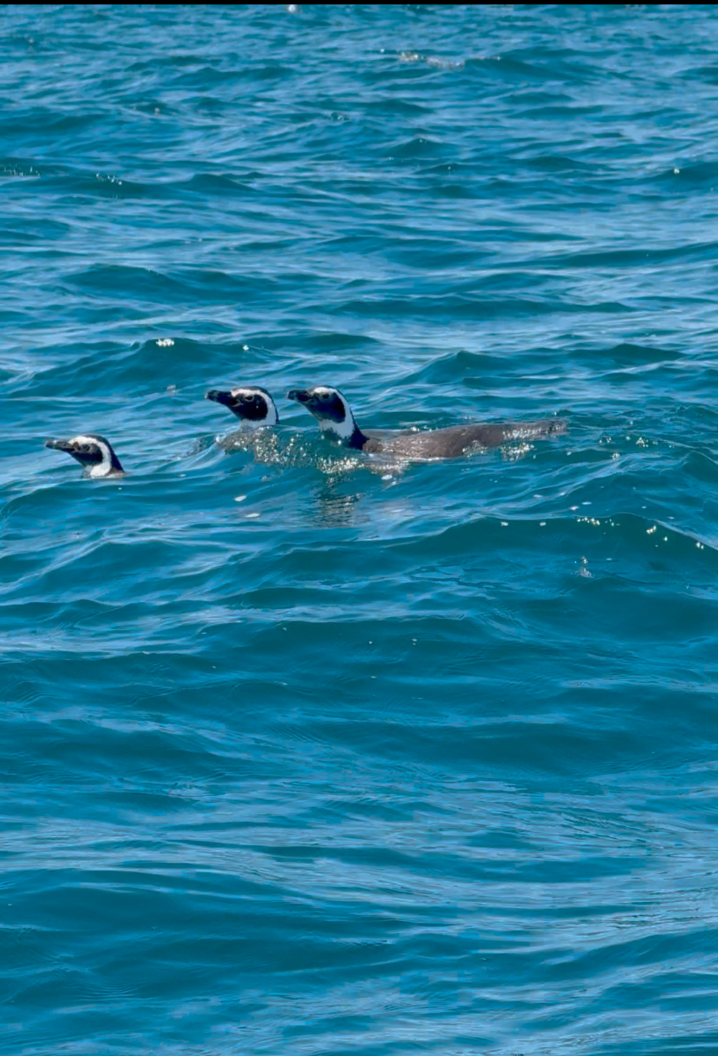 Ganz anders als unsere letzte Begegnung an diesem Tag. Eine Gruppe Pinguine tauchte neben unserem Boot auf, flink, elegant und überraschend interessiert an uns. Statt sich weiter auf ihre Fischjagd zu konzentrieren, drehten sie ein paar Extra-Runden, als wollten sie sehen, was für seltsame Wesen da über ihrem Revier hinwegfuhren. Ein Tausch der Perspektiven, heute waren wir die Attraktion, nicht sie.