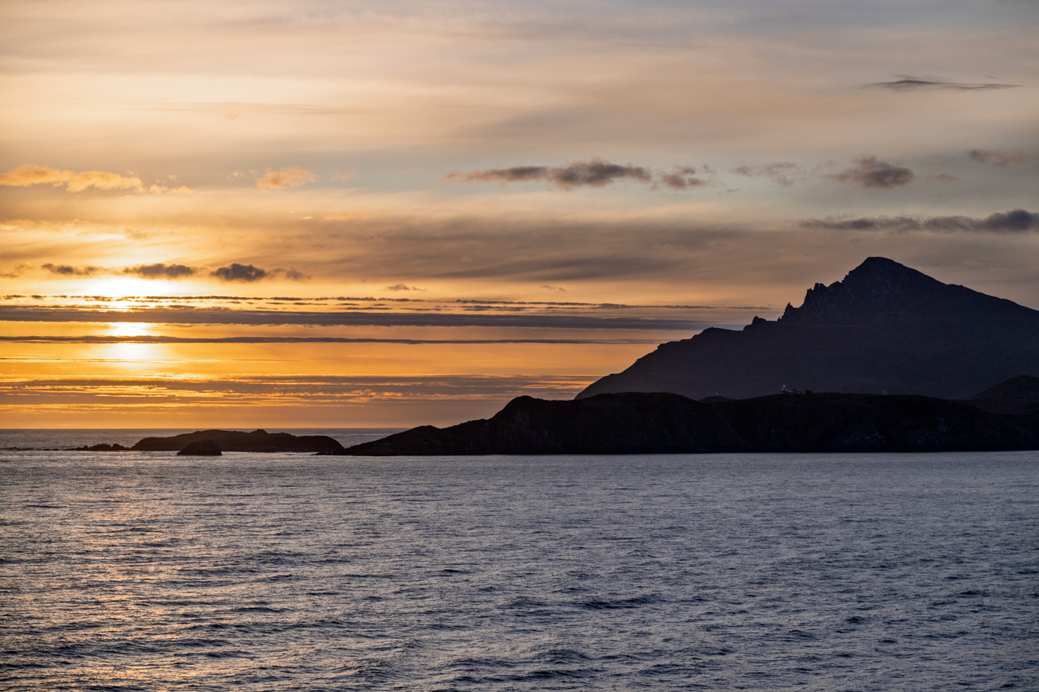 Die See ist heute ruhig, fast zu ruhig für diesen geschichtsträchtigen Ort. Vor zwei Tagen tobte hier noch ein Orkan mit Windgeschwindigkeiten von 120 km/h, doch nun gleiten wir sanft über das Wasser. Für einen Moment verstummen die Maschinen der AIDAsol, und eine beinahe ehrfürchtige Stille legt sich über das Schiff. Nur das leise Rauschen der Wellen begleitet uns, als wir das Kap passieren, den südlichsten Punkt auf unserer Weltreise. Ein Sonnenuntergang taucht den Horizont in flammendes Orange und tiefes Violett, als wollten die Elemente uns für den friedlichen Moment entschädigen. Gänsehaut.