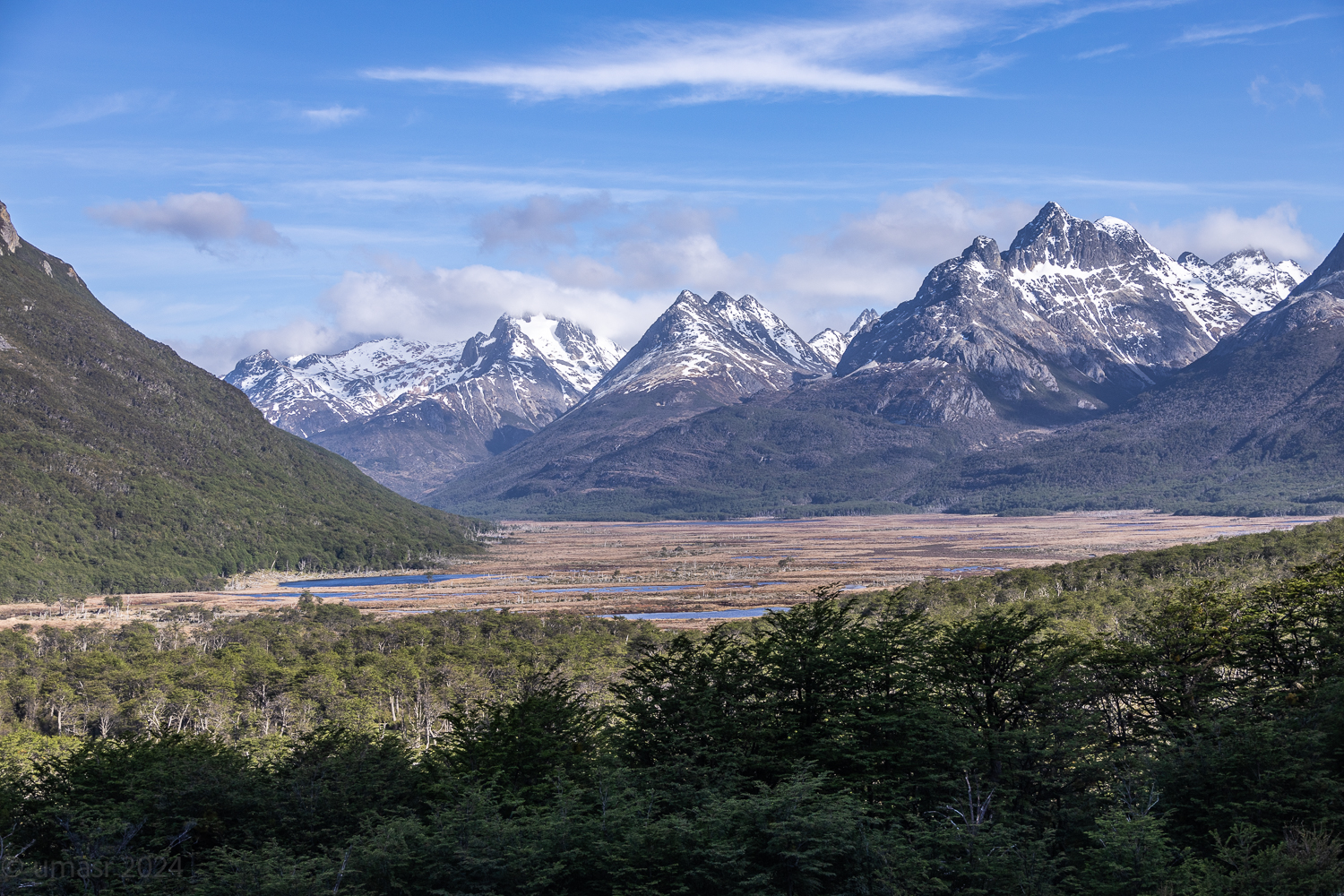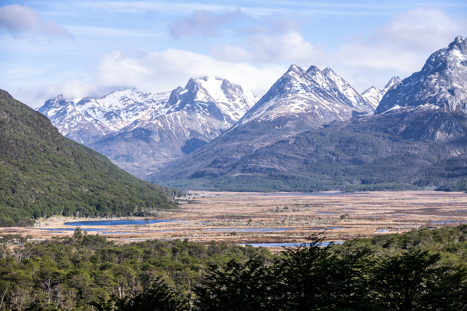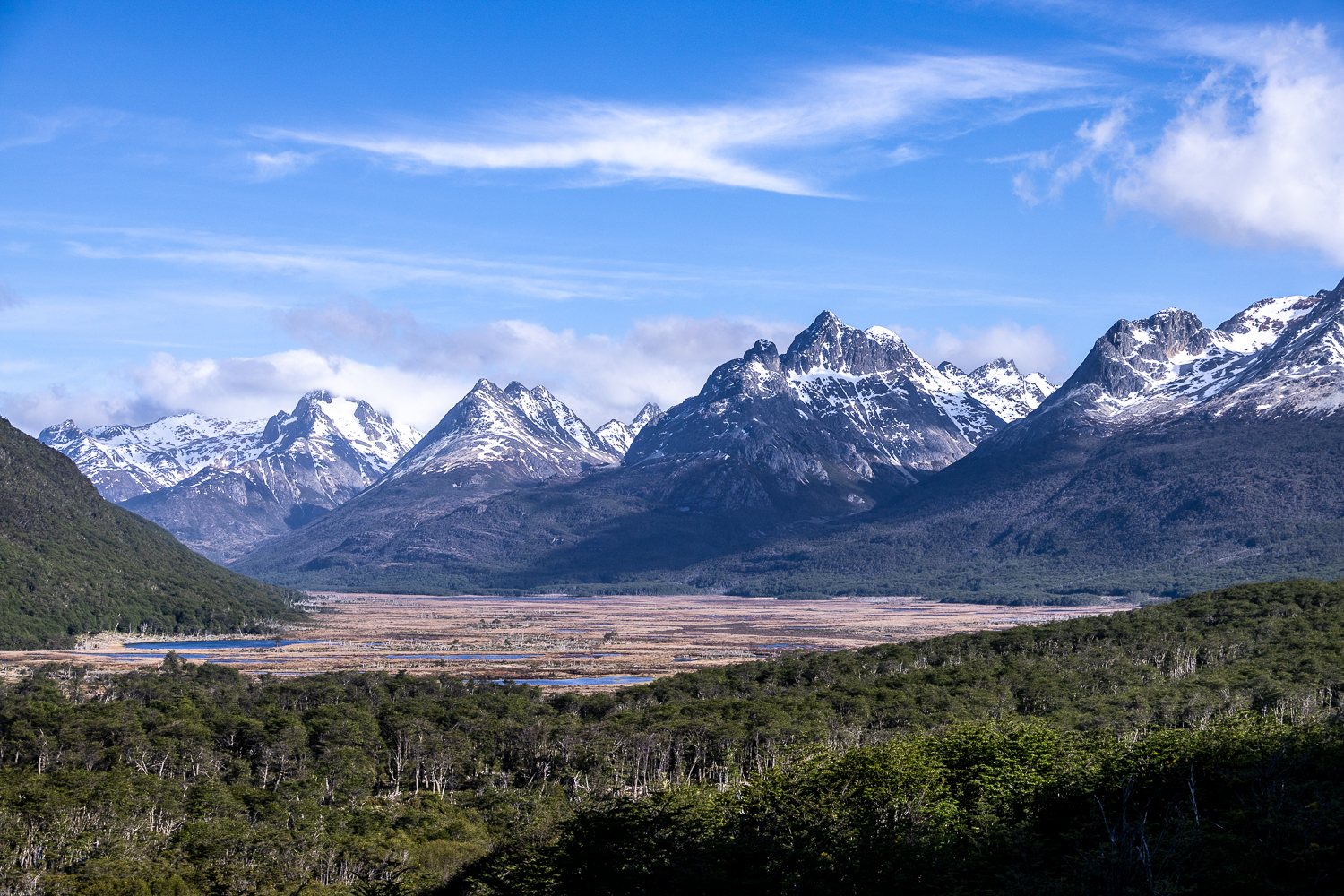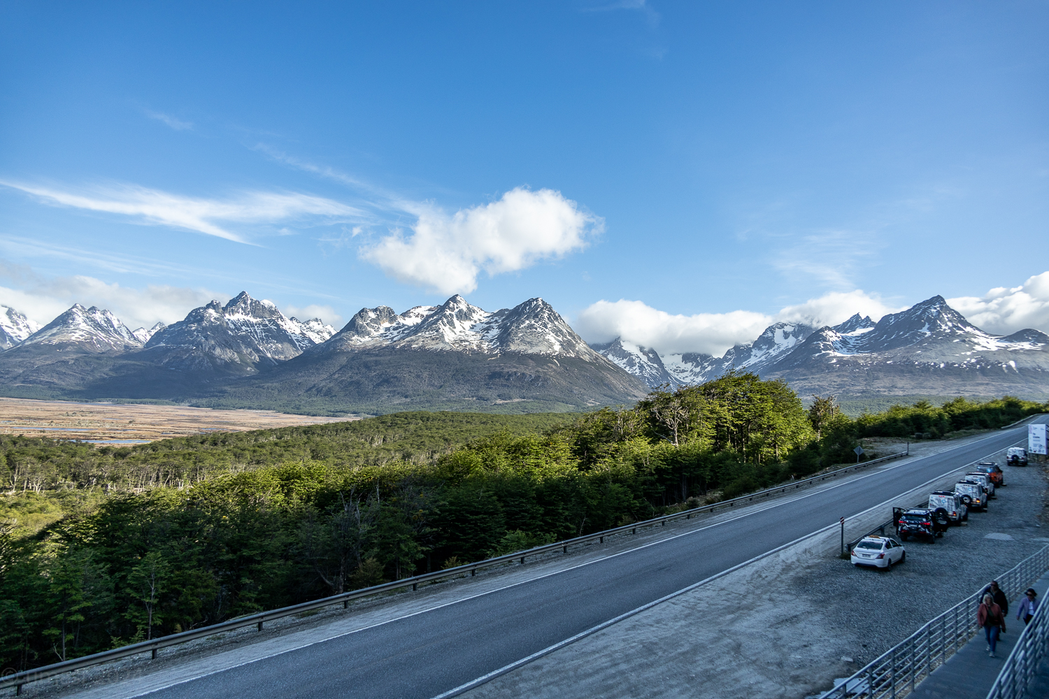 Zunächst führt uns die Route durch Ushuaia. Die Stadt ist rau, geprägt vom Meer und den Bergen, gleichzeitig voller Leben. Doch kaum haben wir die letzten Häuser hinter uns gelassen, öffnet sich eine andere Welt, endlose Weiten, schneebedeckte Gipfel und tiefblaue Seen. Die Ruta Nacional 3 führt uns vorbei an spektakulären Panoramen, die mit jedem Kilometer wilder werden.