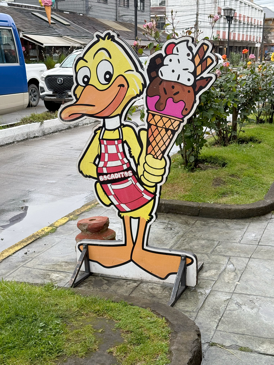 Nach der einstündigen Pause fahren wir zum Skizentrum im La Bubuja Gebiet, dem Besucherpunkt unterhalb des Vulkangipfel Osorno. Leider ist der Gipfel immer noch in Wolken gehüllt, so dass die beeindruckende Schönheit des eisbedeckten Vulkankegel Osorno nicht zu sehen ist. Ein paar Fotos noch im stürmischen Regen von der Liftstation, bevor wir weiter fahren nach Puerto Varas, unserem letzten Ziel am heutigen Ausflug. Puerto Varas liegt am Südufer des Llanquihue-Sees, etwa 20 Kilometer nördlich von Puerto Montt. Hier hatten wir eine Stunde zur freien Verfügung. Die Zeit nutze ich für einen Spaziergang durch die charmante Stadt mit seinen hölzernen Häusern im Kolonialstil. Erbaut wurden diese von deutschen Einwanderern um die 1900er Jahre. Viele Geschäfte, Restaurants und Cafes luden zum bummeln und verweilen ein. Eine Stunde ist auch schnell wieder vorbei. Und so fuhren wir zurück nach Puerto Montt.