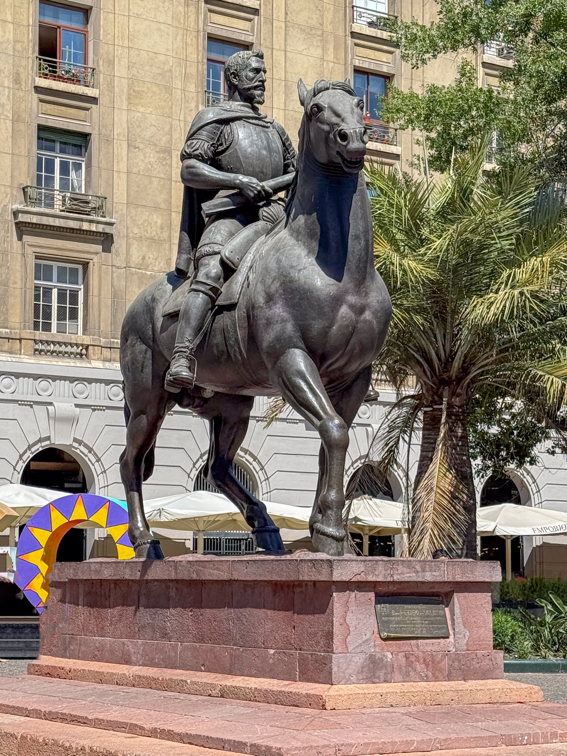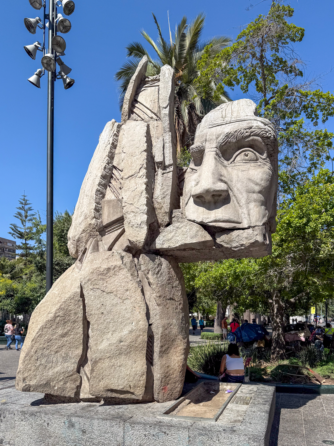 Nach dem Bummel über den Markt wurde es Zeit für eine Stärkung. Wir fuhren zu einem Restaurant am Fuße der kleinen Seilbahn, die auf den Cerro San Cristóbal führt, einer der bekanntesten Hügel der Stadt, von dem man einem atemberaubenden Blick über Santiago hat. Leider war dafür keine Zeit eingeplant. Das Essen spiegelte die Vielfalt der chilenischen Küche wieder, Perfekt, um neue Energie für den nächsten Teil des Ausfluges aufzunehmen, die Erkundung des Stadtzentrums, Geschichte zum Anfassen.