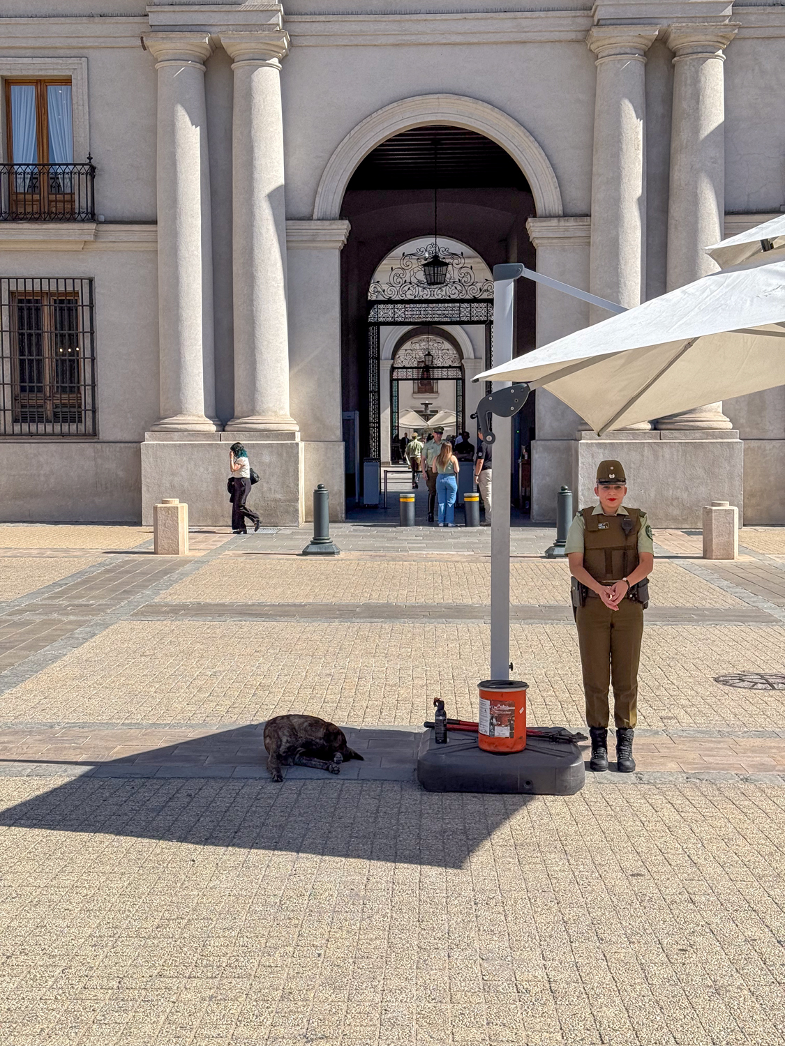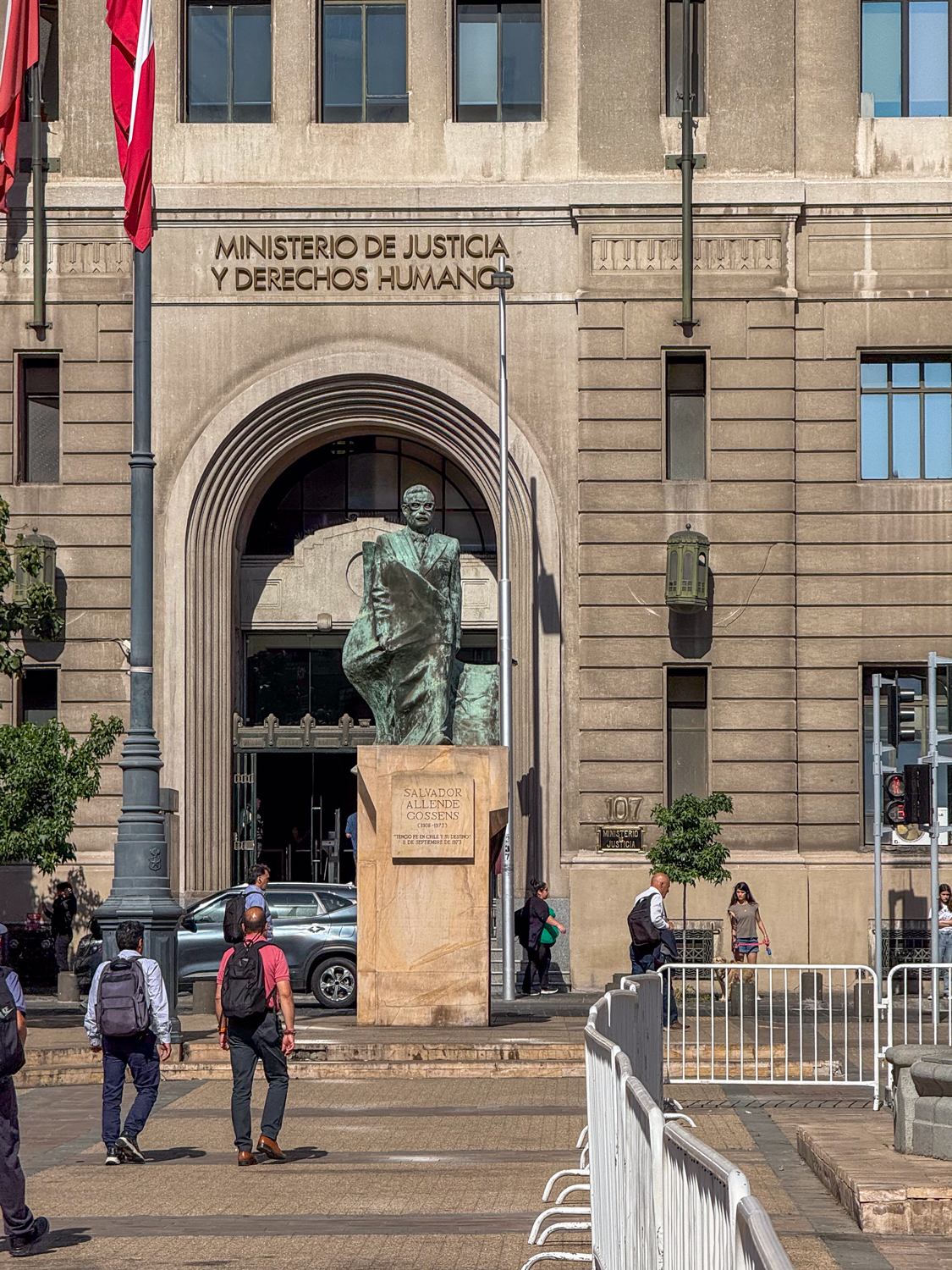 Ein weiteres Highlight war der Palacio de La Moneda, der Präsidentenpalast. Ein Ort mit großer historischer Bedeutung, insbesondere im Zusammenhang mit dem Putsch von 1973. Die beeindruckende Architektur und die strengen Wachen vor dem Palast erinnerten daran, wie eng Geschichte und Gegenwart in Santiago miteinander verwoben sind.